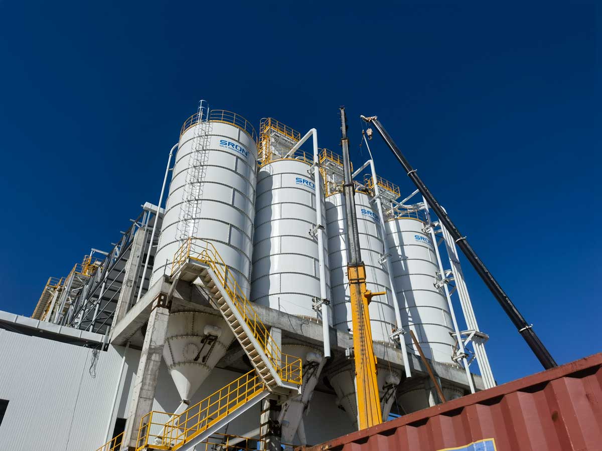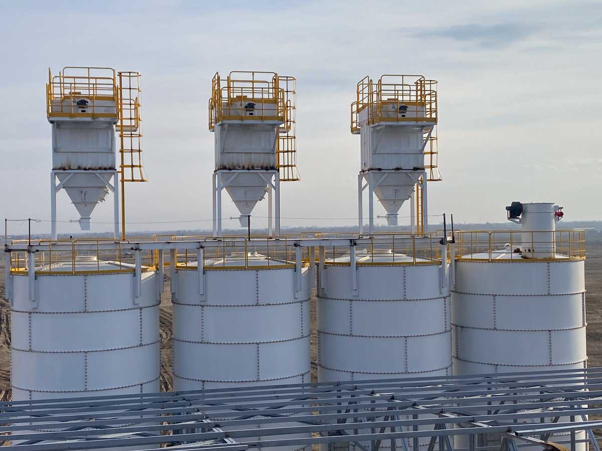 本项目为高度集成的一体化散料储运工程项目,涵盖原料储存、输送、筛分、超细粉磨、成品储存、自动包装及散料发放等完整工艺流程。项目采用装配式钢板仓与焊接钢板仓组合方案,根据不同物料与工况进行差异化设计,兼顾安全性、耐久性与施工效率。整体系统工艺复杂、技术要求高,配套完善的智能监测控制系统。实荣凭借成熟的系统化设计与工程实施能力,实现各工序高效协同与稳定运行,打造了兼具智能化、环保性的高标准工程项目。
